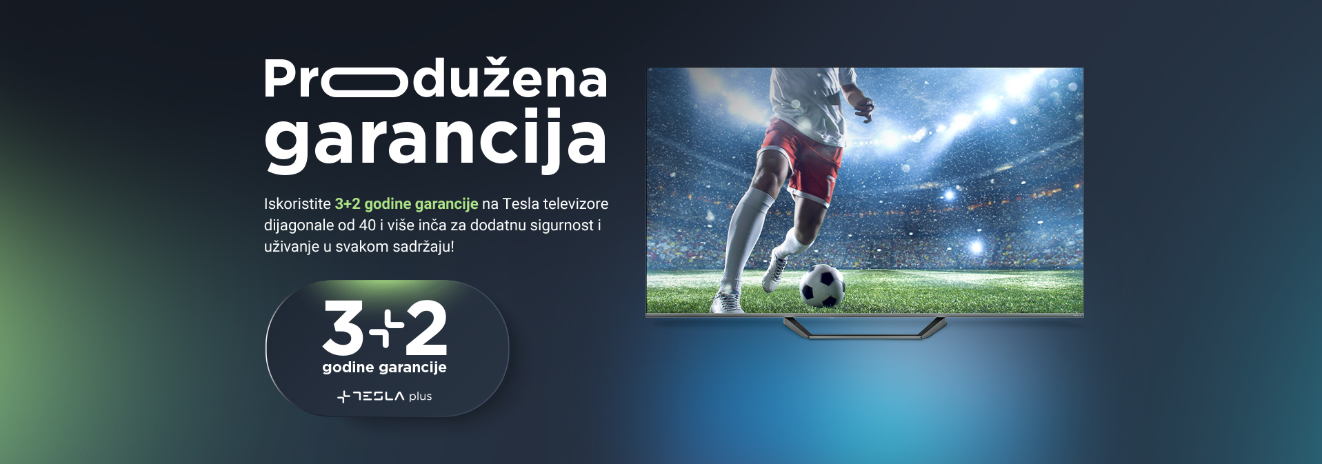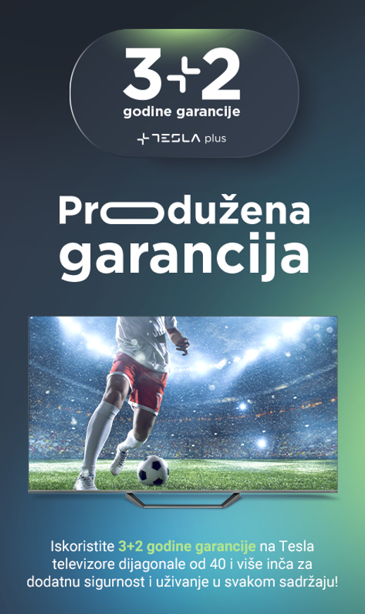 Pravo na produženu garanciju ostvaruje se uz kupovinu bilo kog Tesla televizora dijagonale od minimum 40 inča u periodu od 01.04. do 31.07.2026. godine.